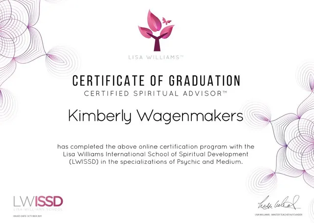 I knew he came back into my new kitty which “he chose.” So my boy gave me my peace and unconditional love and stopped my triggers. He was my life and family! I searched for help, and spirit put me into the perfect hands. I have been working and studying under several mediums and healers, including Lisa Williams, since 2020 under her mediumship mentorship certification program. I will be certified by Summer 2021. I always enjoy learning and gaining more knowledge about mediumship, angels and aura colors.